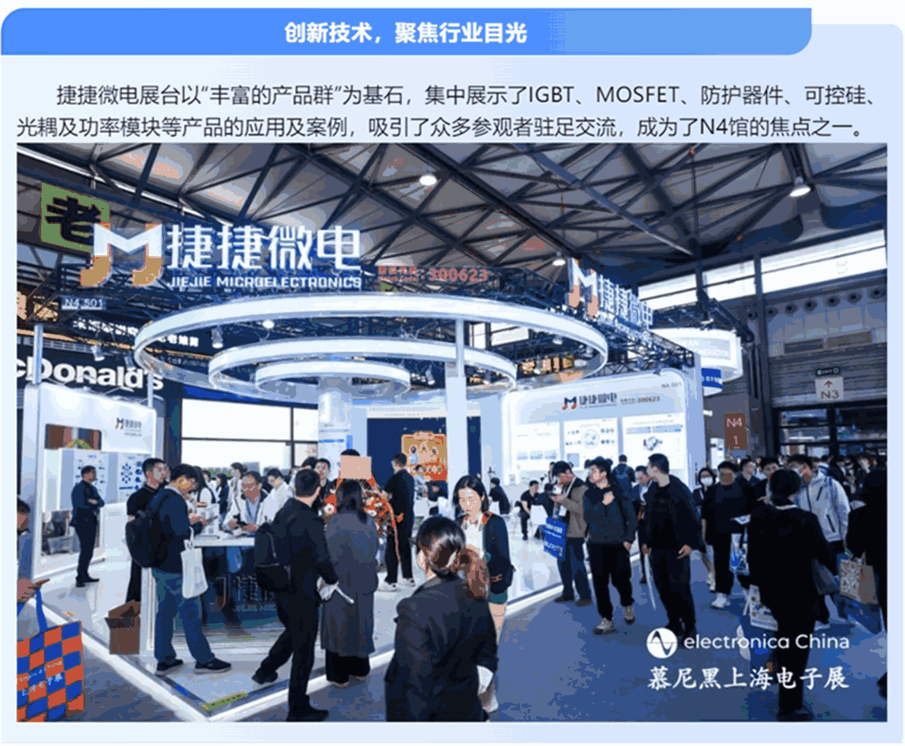 2025年4月15日至17日,慕尼黑上海电子展(Electronica China)在上海新国际博览中心盛大启幕。作为电子行业的年度盛会,中国·8827太阳集团微电携IGBT、MOSFET、防护器件、可控硅、光耦及功率模块等产品,以创新之姿亮相慕尼黑电子展,与全球客户、合作伙伴及行业专家共话前沿科技,开启了一场充满灵感与机遇的电子盛宴!